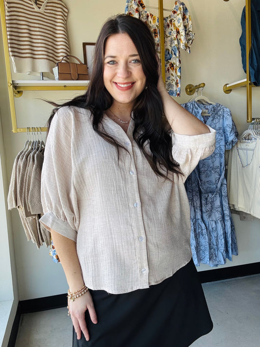 Oatmeal Dolman Sleeve Button Up