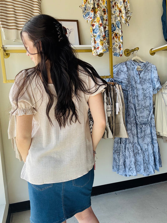 Natural Smocked Half Sleeve Top