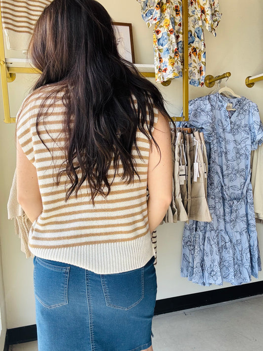 Brown Stripe Textured Tank