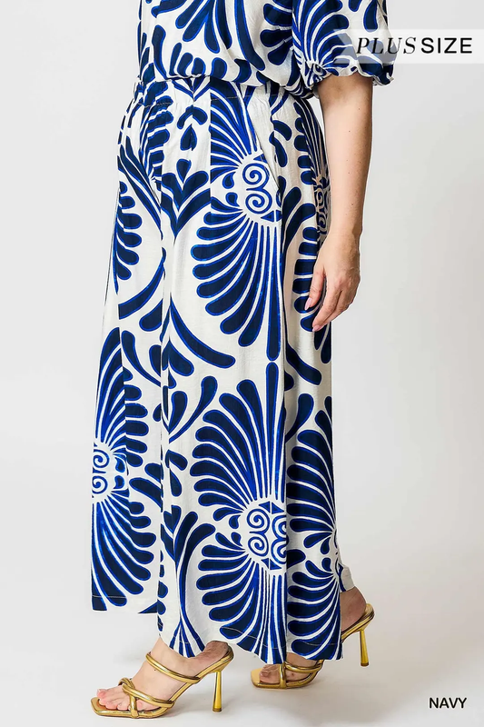 Blue Feather Wide Leg Pants - Plus