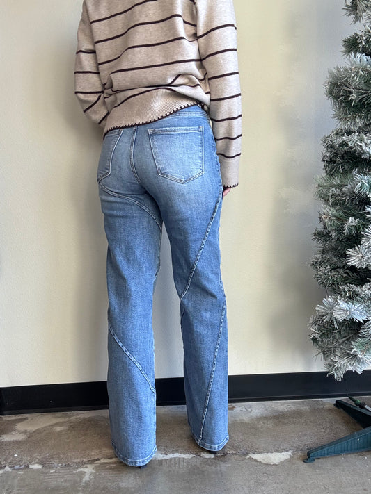 Decorative Seam Wide Leg Denim