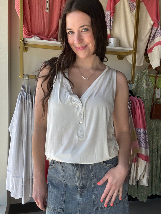 Ivory V Neck Button TankRegular price $29.00 USDRegular priceUnit price per-