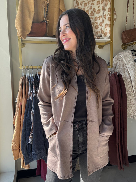 Mocha Stitch Trim CardiganRegular price $58.00 USDRegular priceUnit price per-