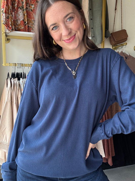 Navy Corrine PulloverRegular price $48.00 USDRegular priceUnit price per-