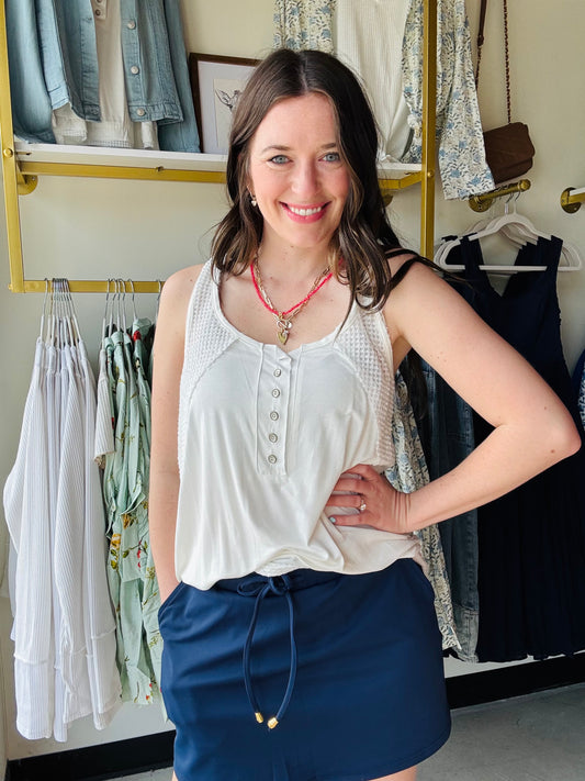 Off White Mesh Accent TankRegular price $28.00 USDRegular priceUnit price per$38.00 USDSale price $28.00 USDSale