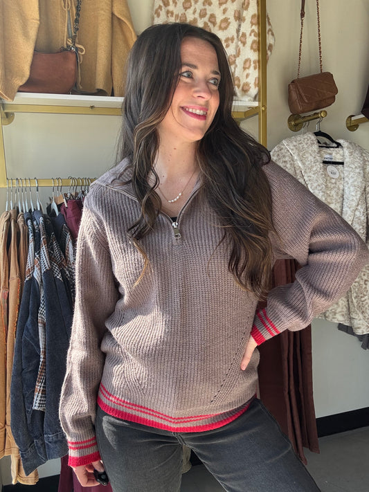 Red Accent Zip Up PulloverRegular price $48.00 USDRegular priceUnit price per-