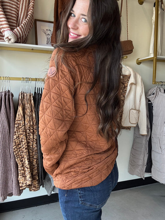 Rust Geometric Snap Pullover