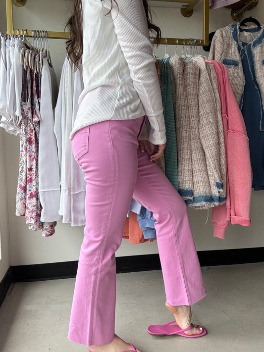 Wine High Rise Cropped Denim