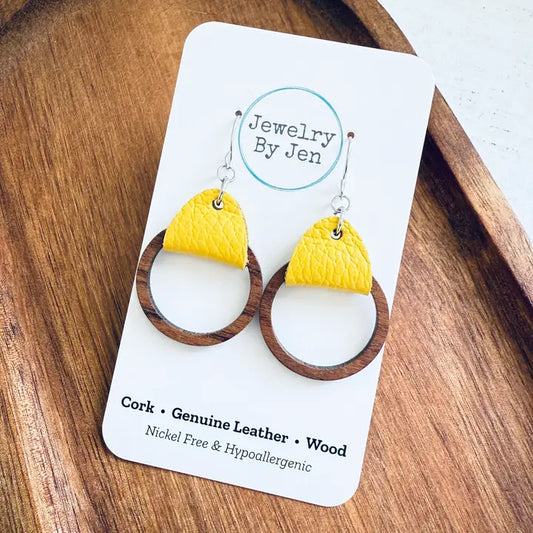 Wood Hoop Earrings - Yellow