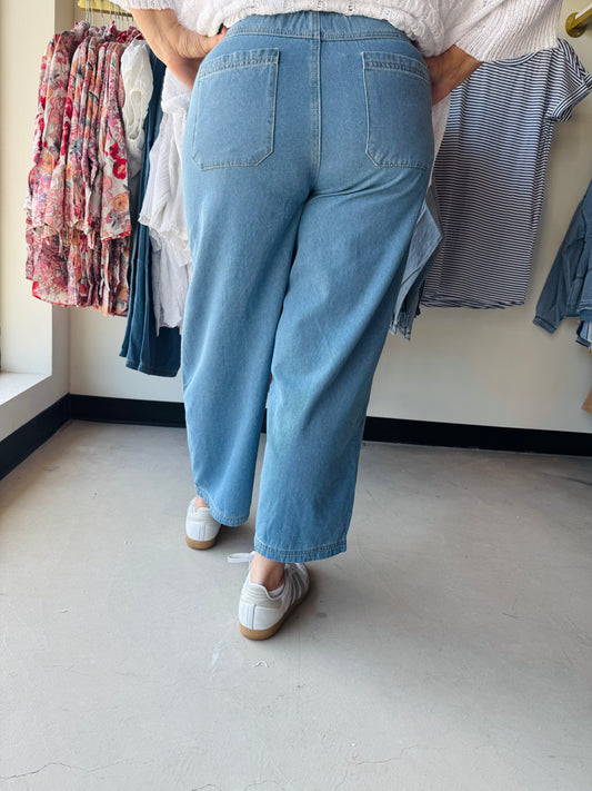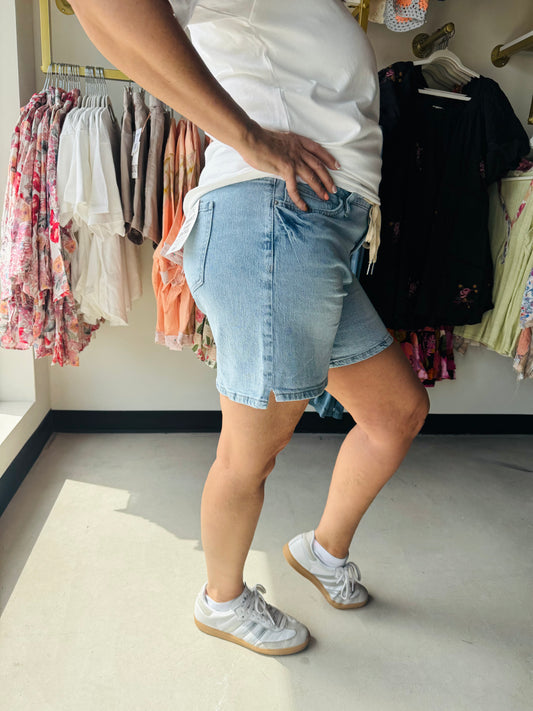 Wide-Leg Denim Bermuda Shorts - Light Wash