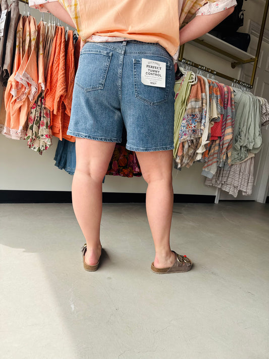 Wide-Leg Denim Bermuda Shorts - Dark Wash