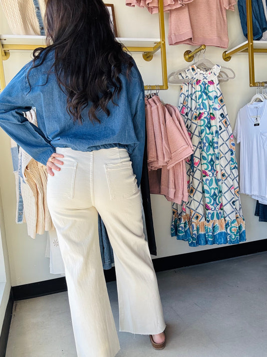 Decorative Seam Wide Leg Denim
