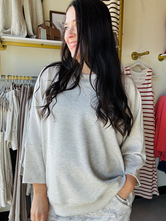 Melange Dolman 3/4 Sleeve Pullover
