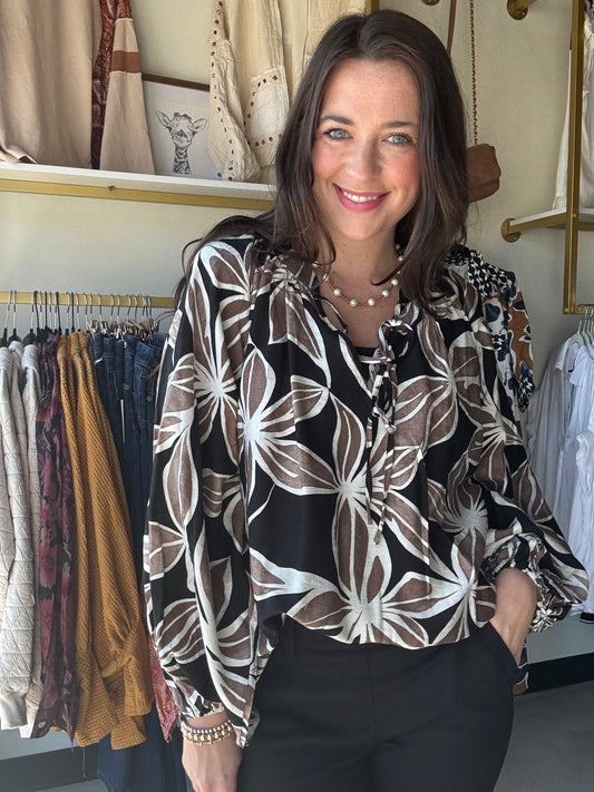 Black & Mocha Floral Blouse