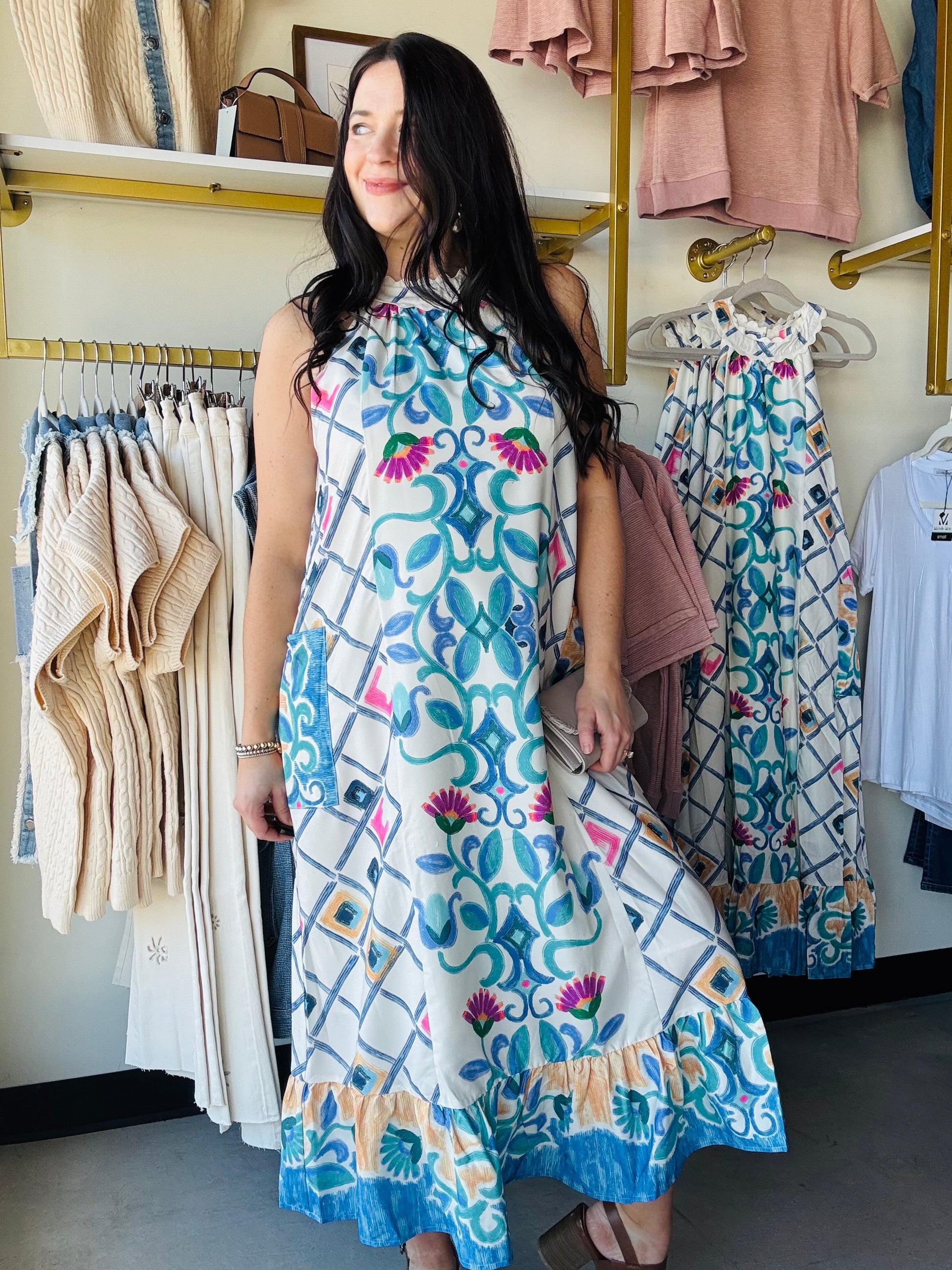 Halter Neck Printed Maxi Dress