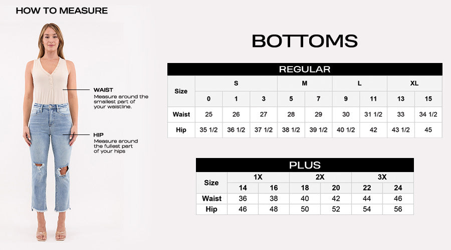 Product Details: - 5 Pocket Detail - Belt Loops - Button & Zipper Fly - High Rise - Flare Leg - Angled Outseam Stitching Detail Size & Fit (based on size 5): - Inseam: 33" - Rise: 11" - Leg Opening: 21" 92% Cotton / 6% Polyester / 2% Spandex Machine wash cold. Separately inside out.