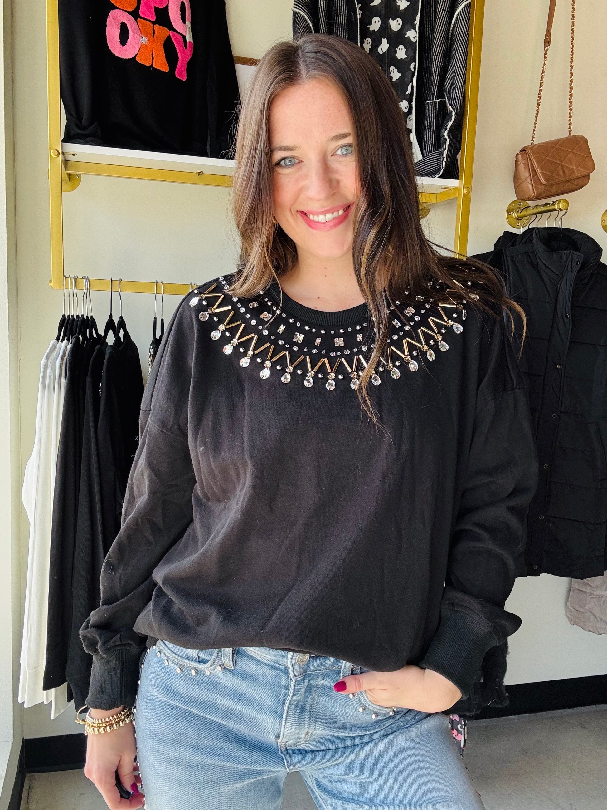 Embellished Black Pullover