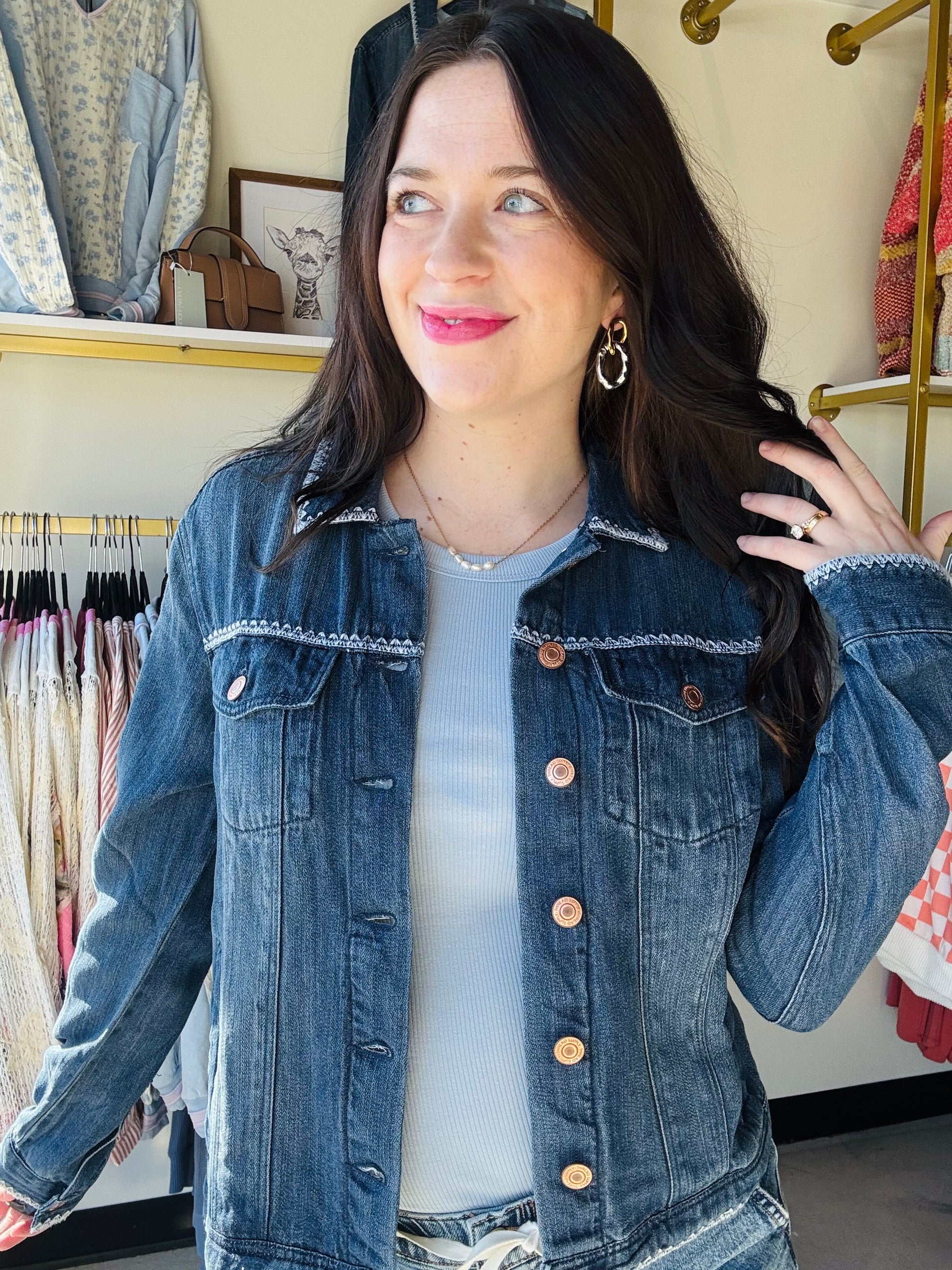 Trust us, you need this denim jacket in your life. Made with our super soft Tencel Lyocell, the Jackie Jacket is a wardrobe staple!