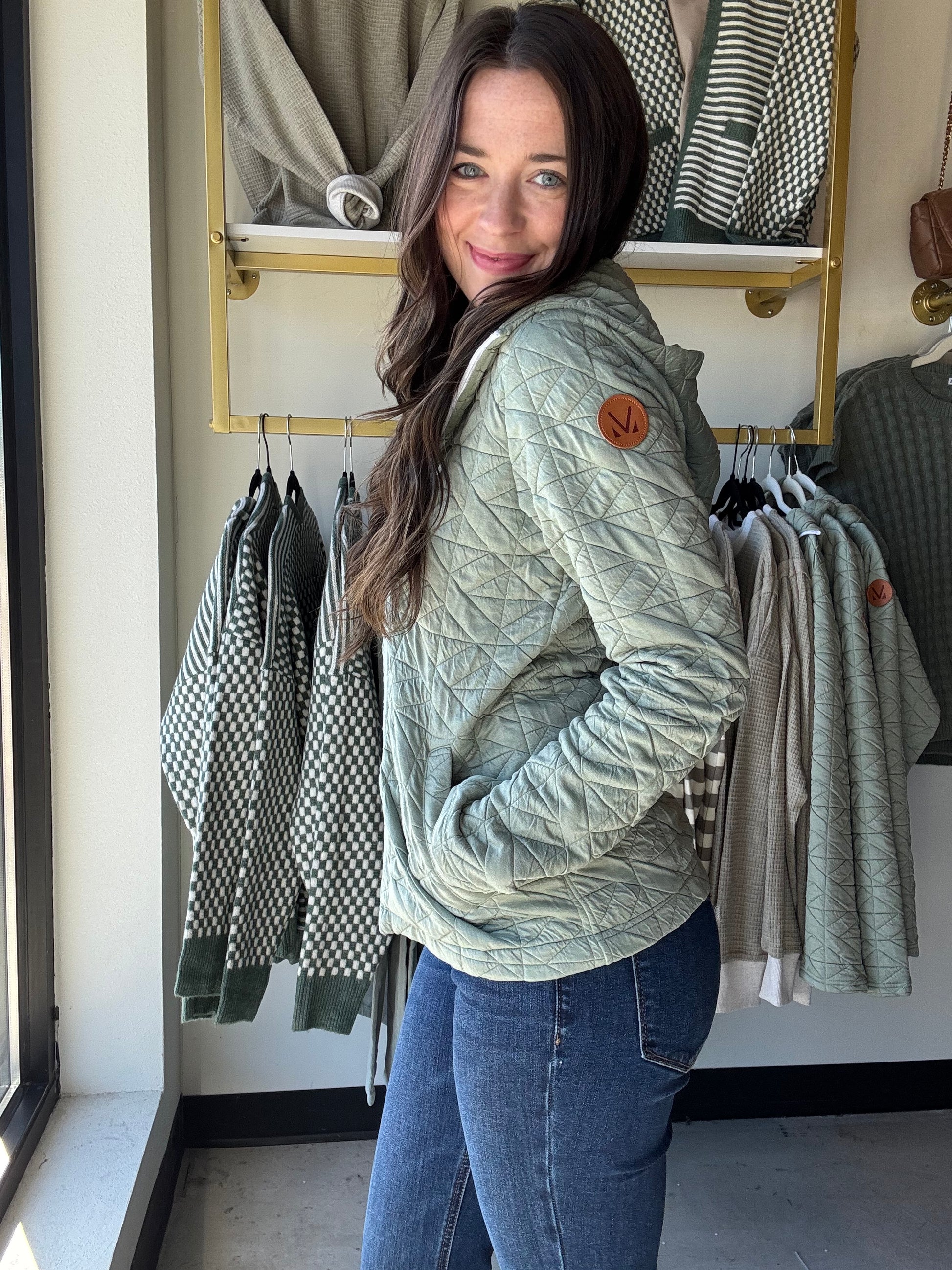 Unleash your daring side with our Geometric Fullzip Hoodie in Sage! Conquer the world in style with its unique geometric pattern, fullzip design, and hidden pockets for convenience. Made from incredibly soft and luxurious material, this hoodie is ready to elevate your adventurous spirit.