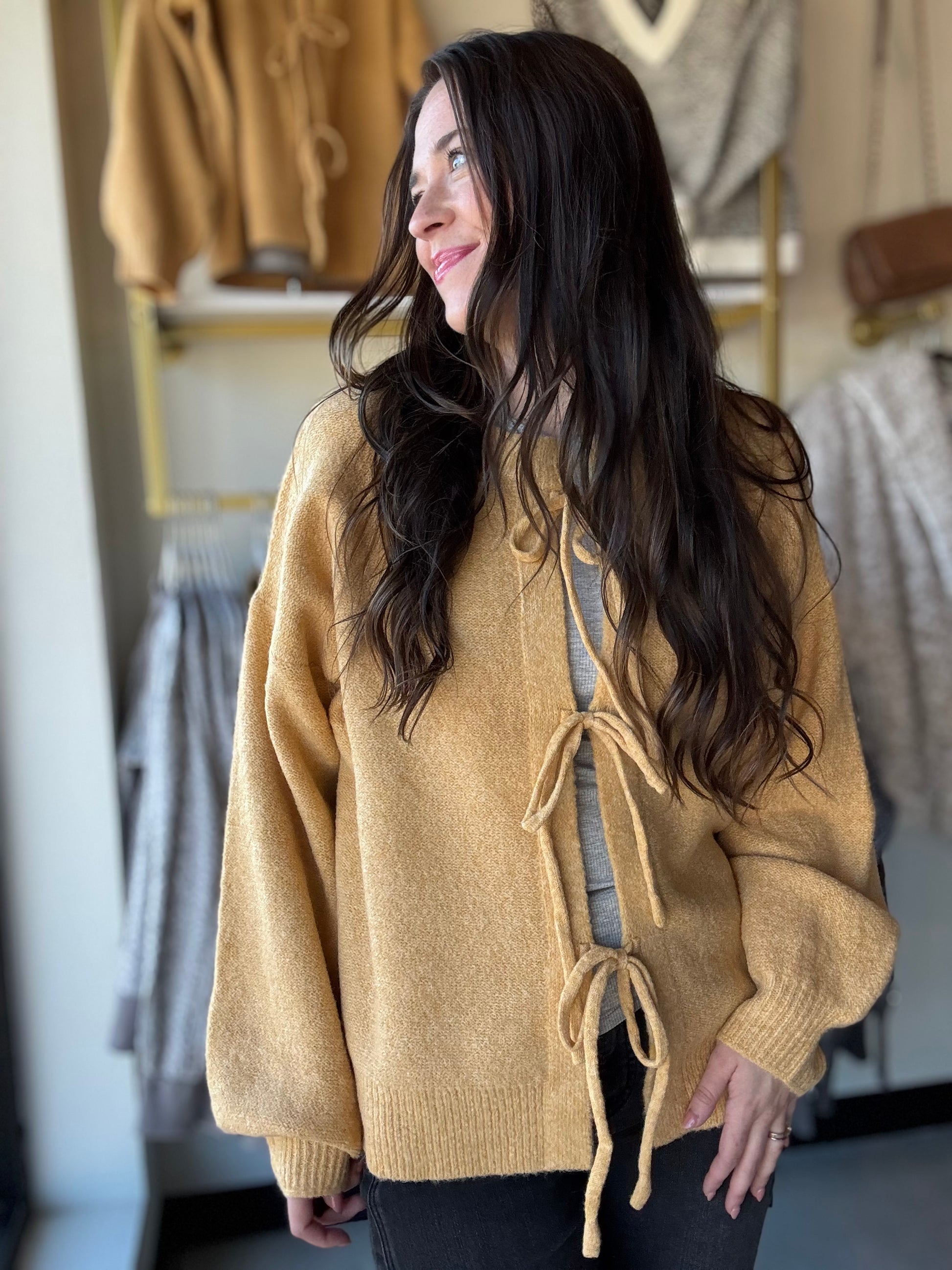 Elevate your cozy style with this Gold Tie Closure Sweater, featuring charming slight balloon sleeves that add a flirty touch. Crafted with top-notch quality, it’s perfect for those who love a playful yet polished look. Wrap yourself in warmth and whimsy every time you wear it!