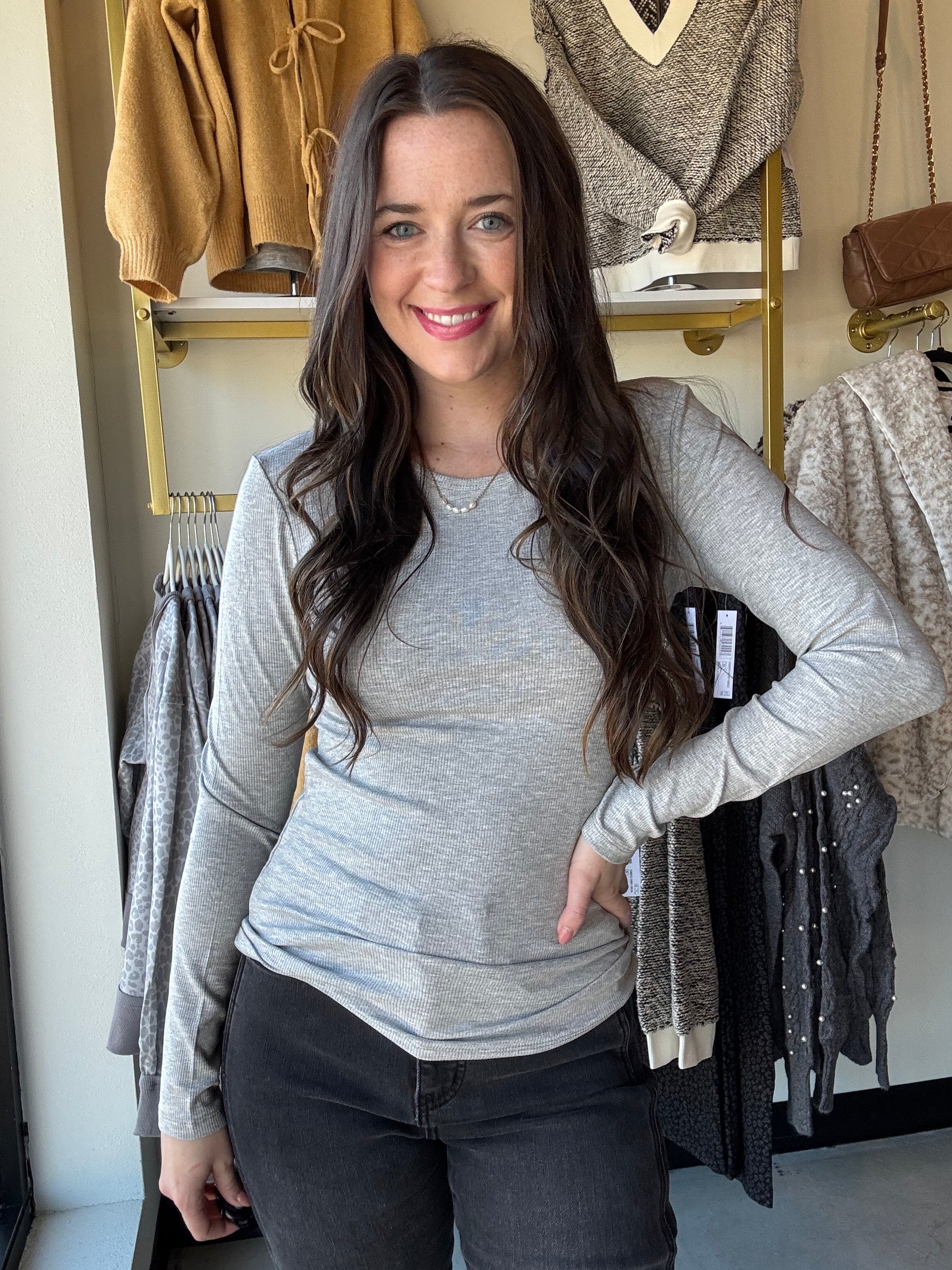 Cozy meets cute in this Heather Grey Viscose Long Sleeve tee. Its soft, breathable fabric keeps you comfy all day, while the classic crew neckline adds just the right touch of charm. The fitted silhouette hugs your shape for a flattering look, and those long sleeves are perfect for chillier days or layering fun.