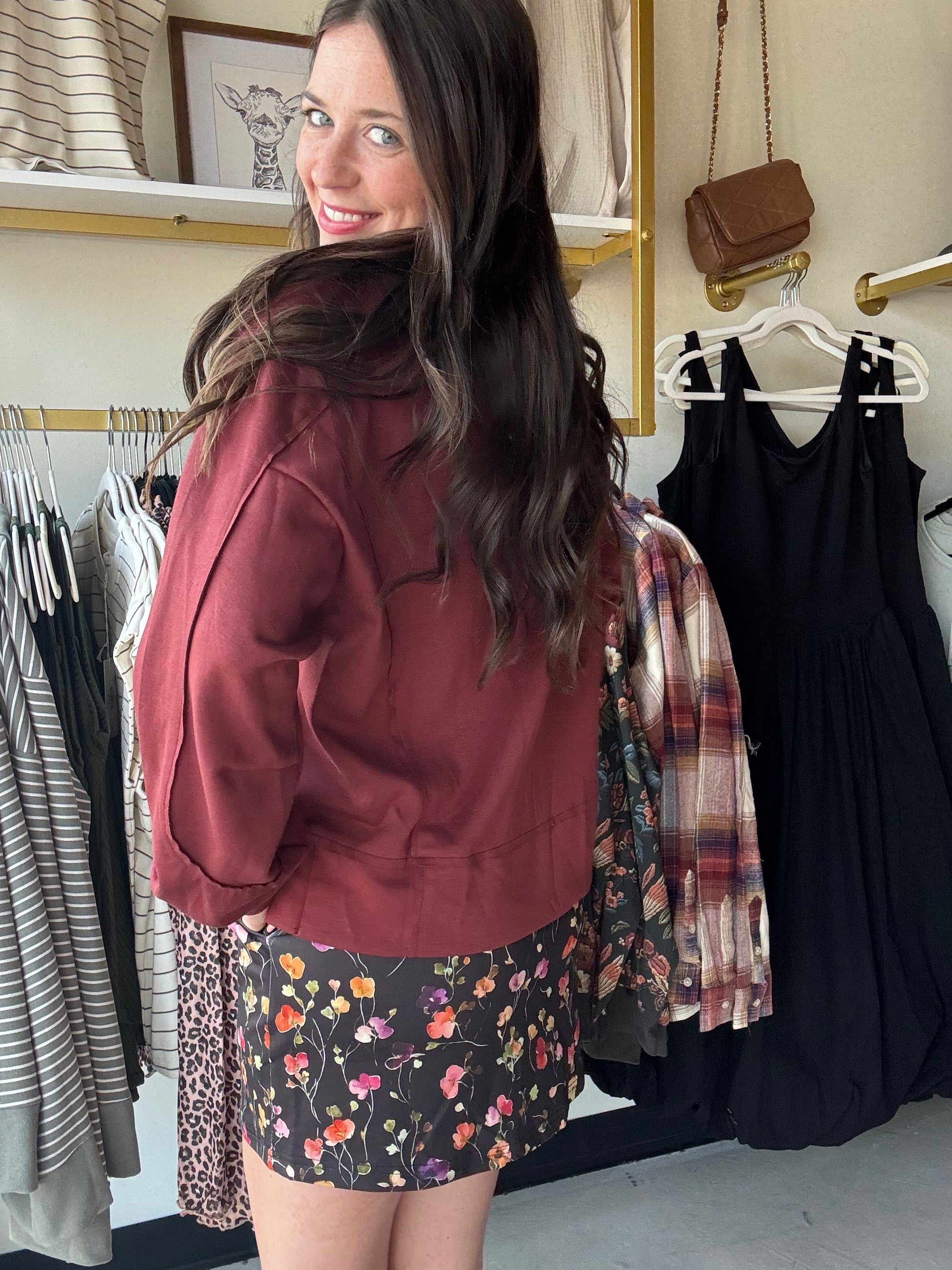 Crafted with luxeknit material, this Mahogany Polo Sweatshirt boasts an extremely soft and stretchy texture. The classic polo style neckline adds a touch of sophistication to your casual look. Experience ultimate comfort and style in one with this must-have wardrobe staple.