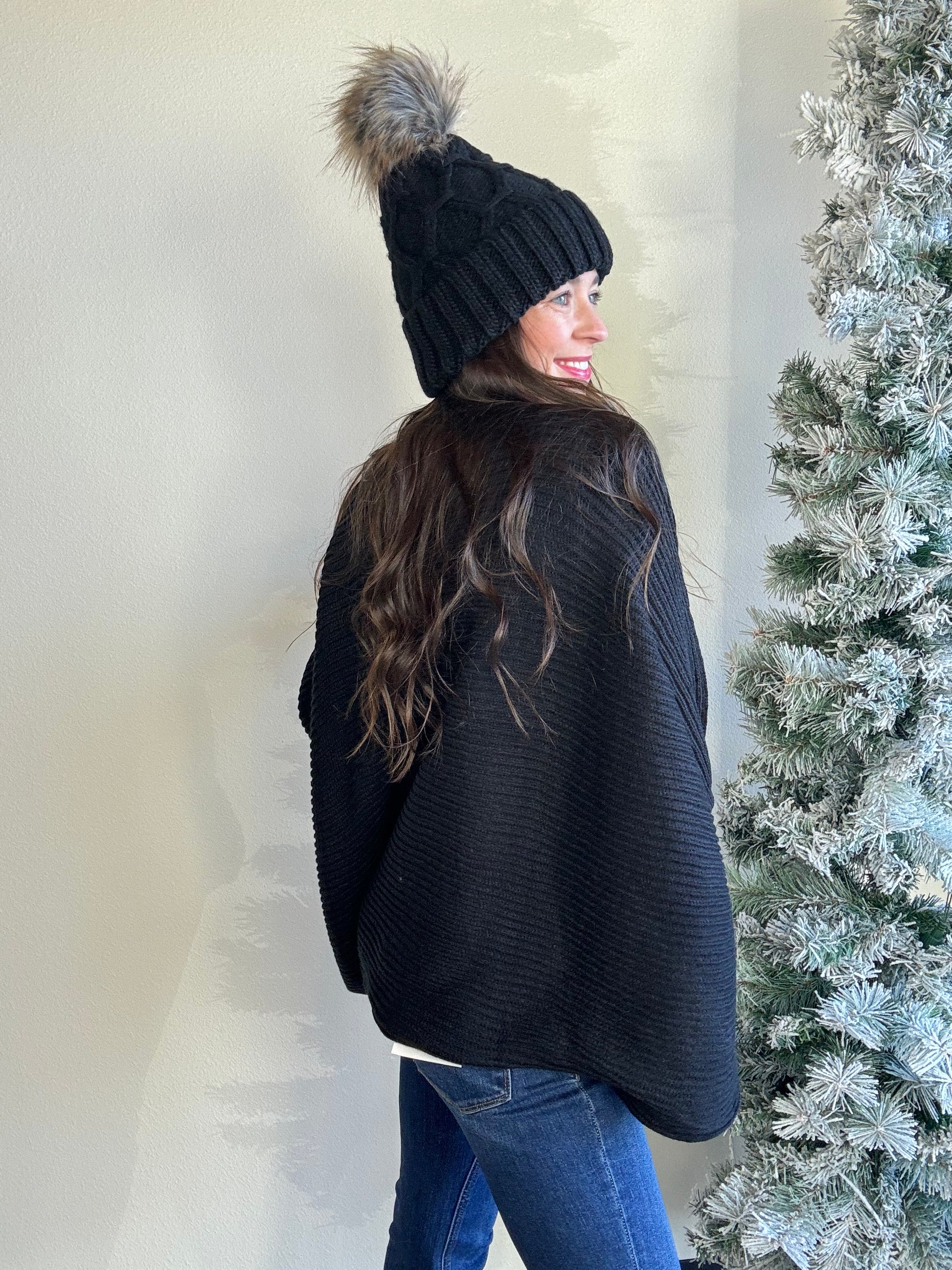 Stay warm and fashionable in this MEG Pullover Poncho. Features long arm holes for a flowy poncho feel, yet in a cute knit sweater. This stylish poncho sweater is designed to keep even the chilliest weather at bay. Perfect for a chic, cozy look.