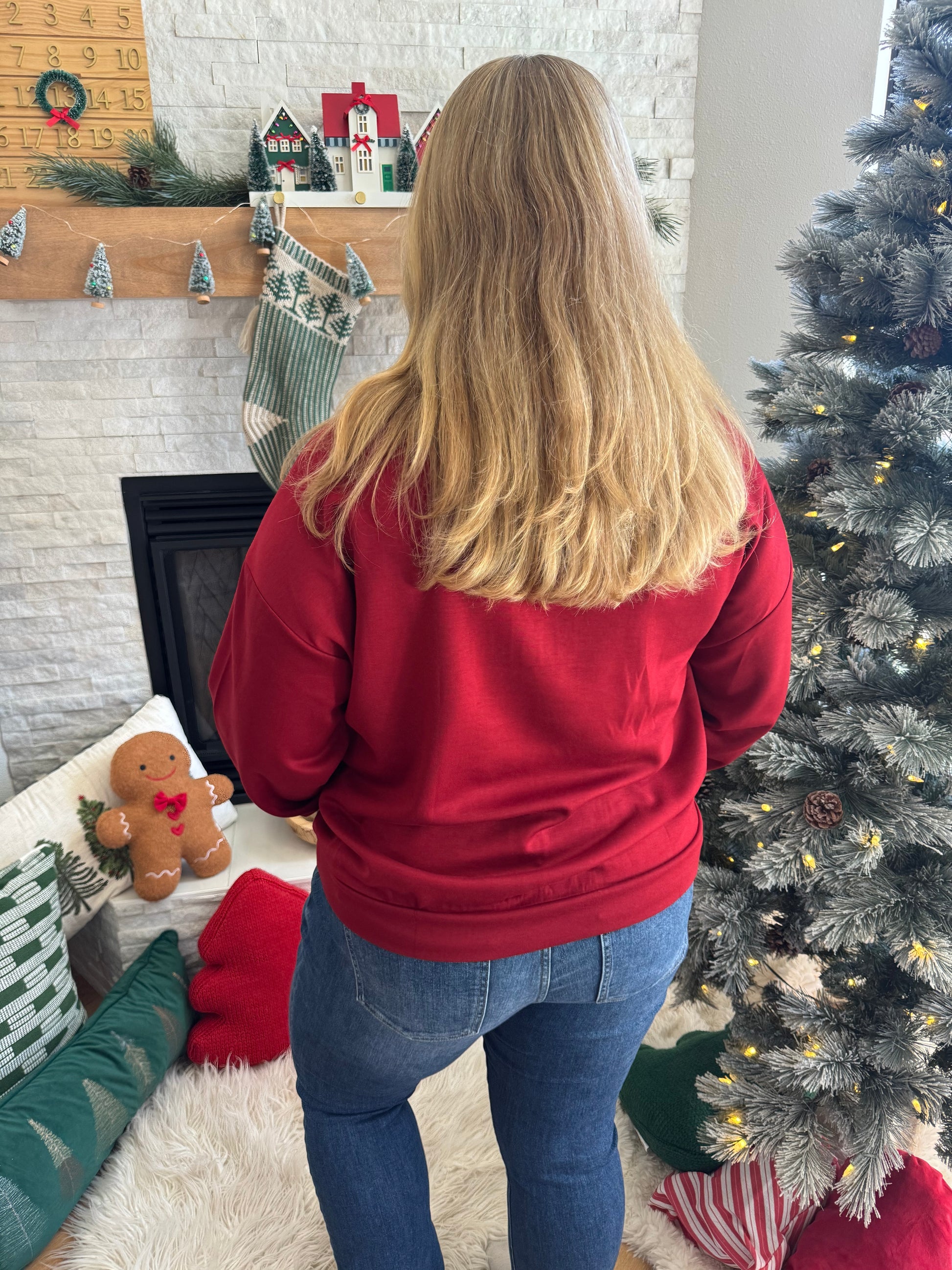 The Merry Plaid Patch Luxe Pullover, crafted from our favorite Luxe fabric, is soft, cozy, and a timeless Christmas essential. It pairs effortlessly with jeans or one of our festive plaid skorts, making it a perfect addition to your holiday wardrobe.