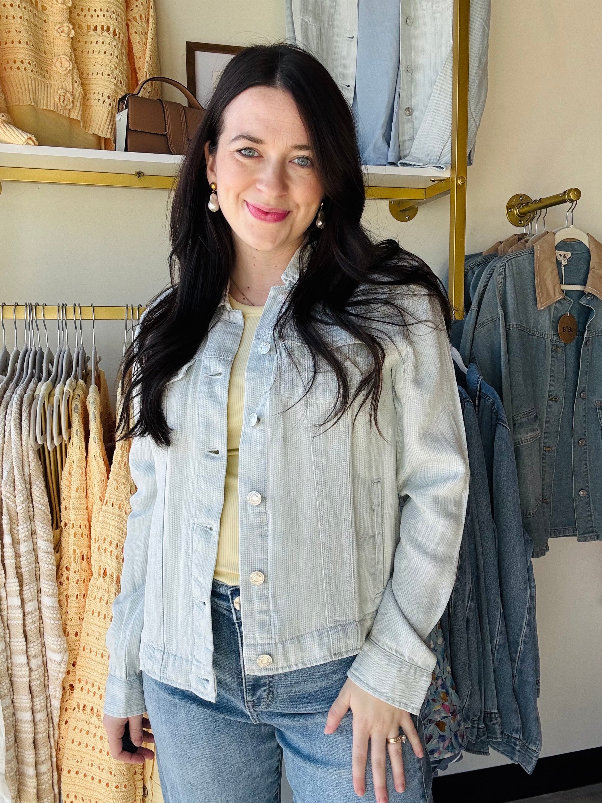 Trust us, you need this denim jacket in your life. Made with our super soft Tencel Lyocell, the Jackie Jacket is a wardrobe staple!