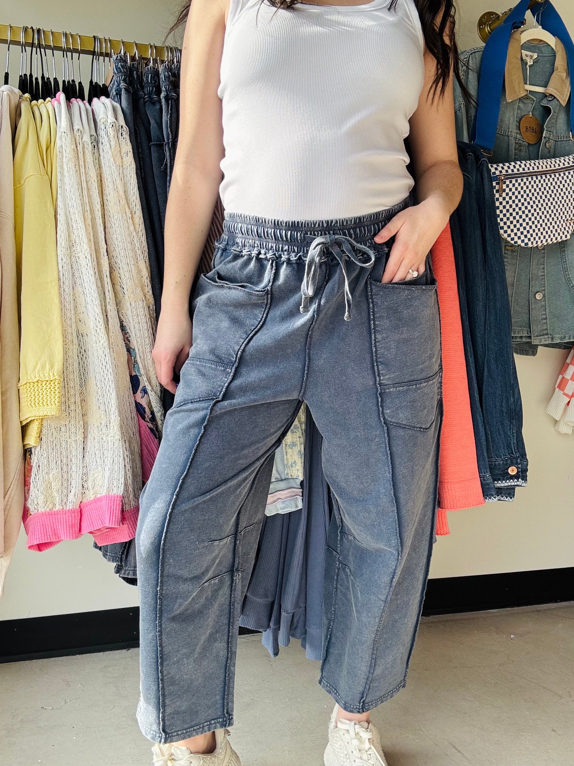 MINERAL WASHED TERRY KNIT BARREL PANTS