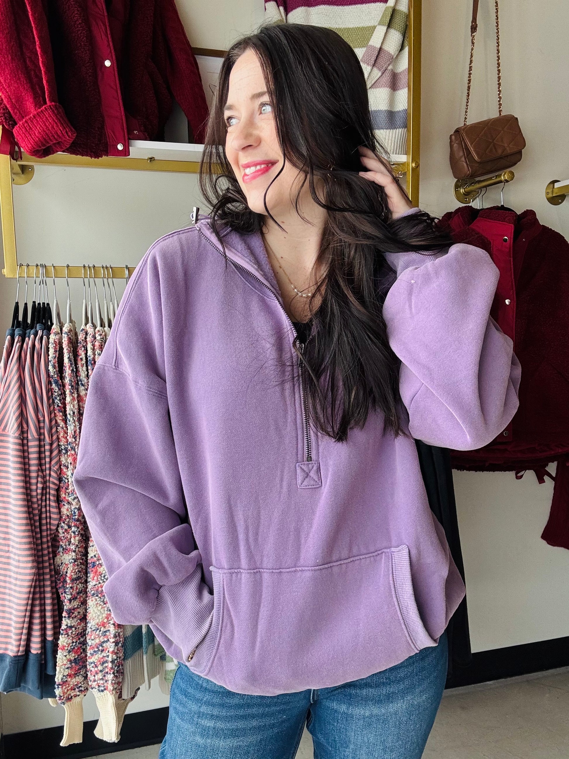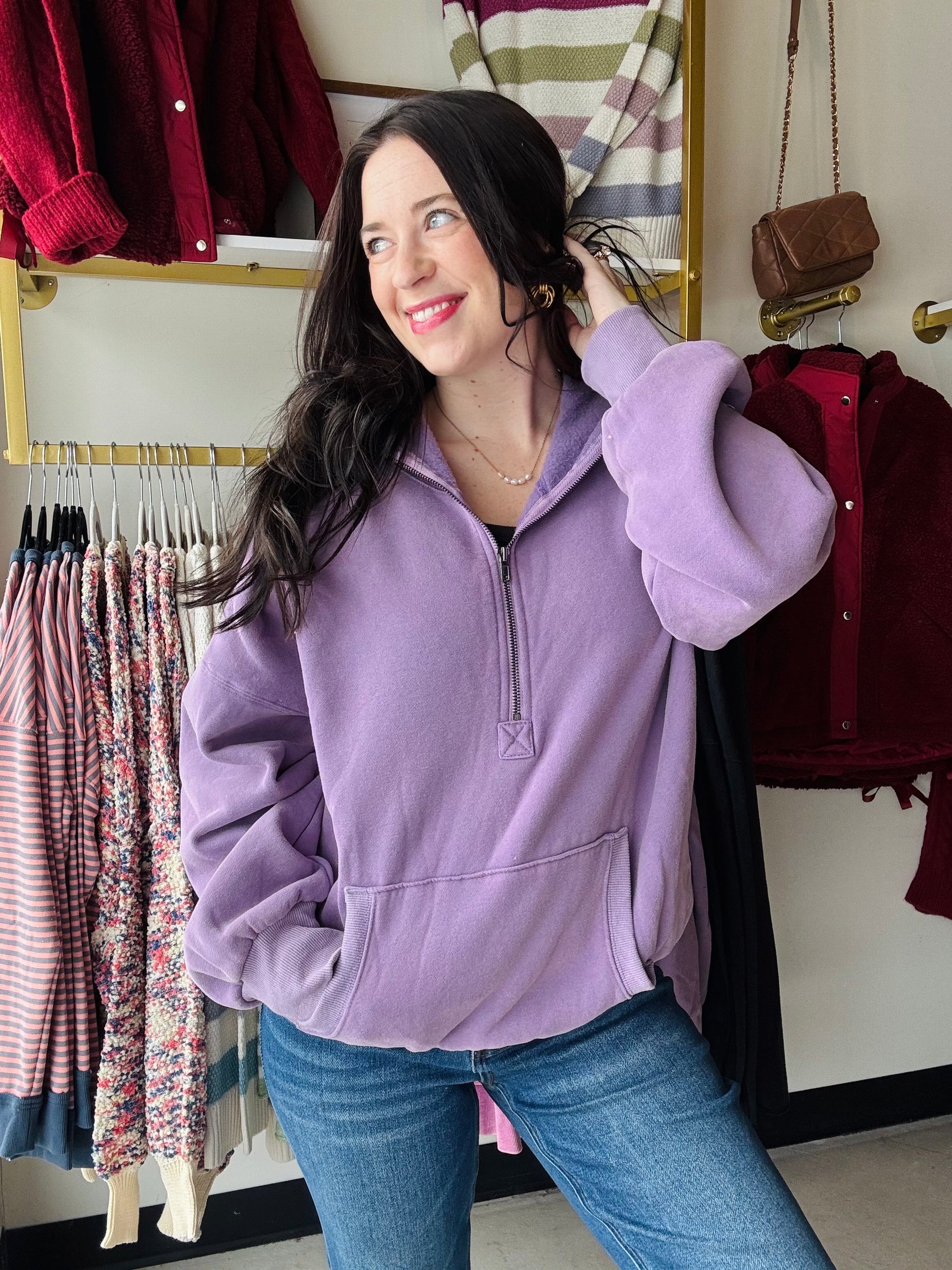 Stay cozy and stylish with our Periwinkle Elastic Hem Hoodie! This half zip fleece hoodie features unique stitch detailing and an elastic hem for a comfortable fit. Perfect for any weather, this hoodie is a must-have for your wardrobe.