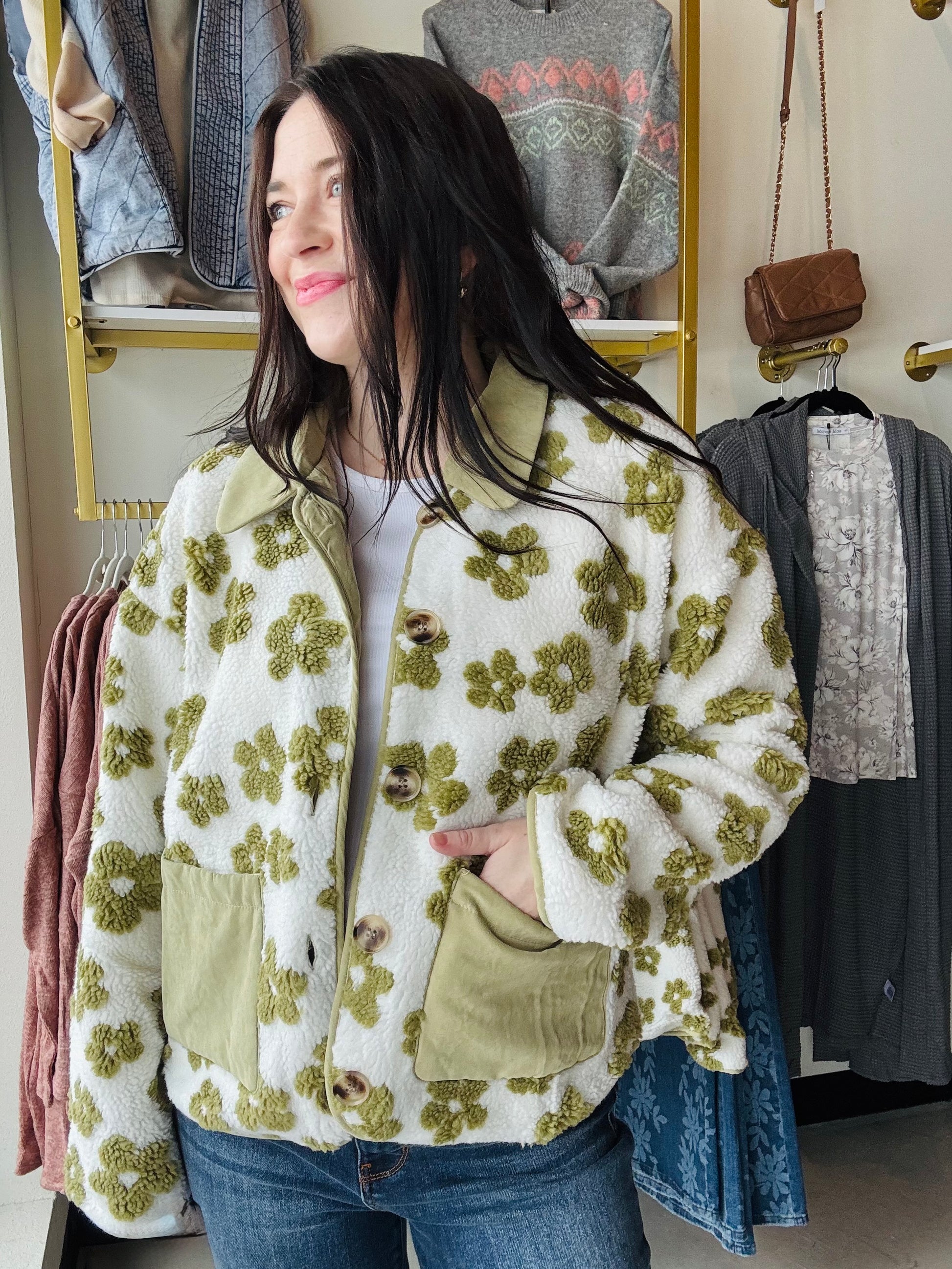 Pistachio Floral Teddy Jacket