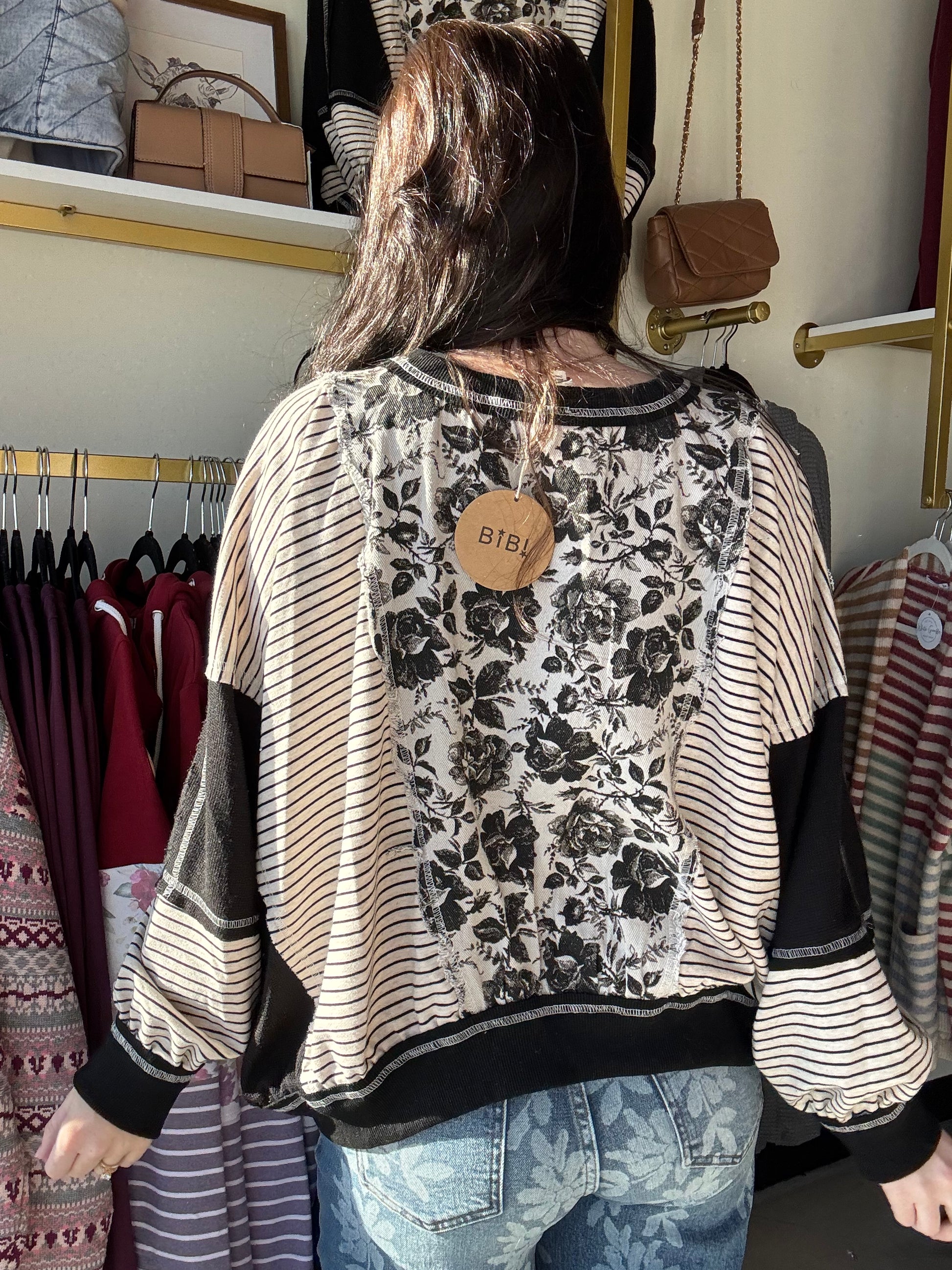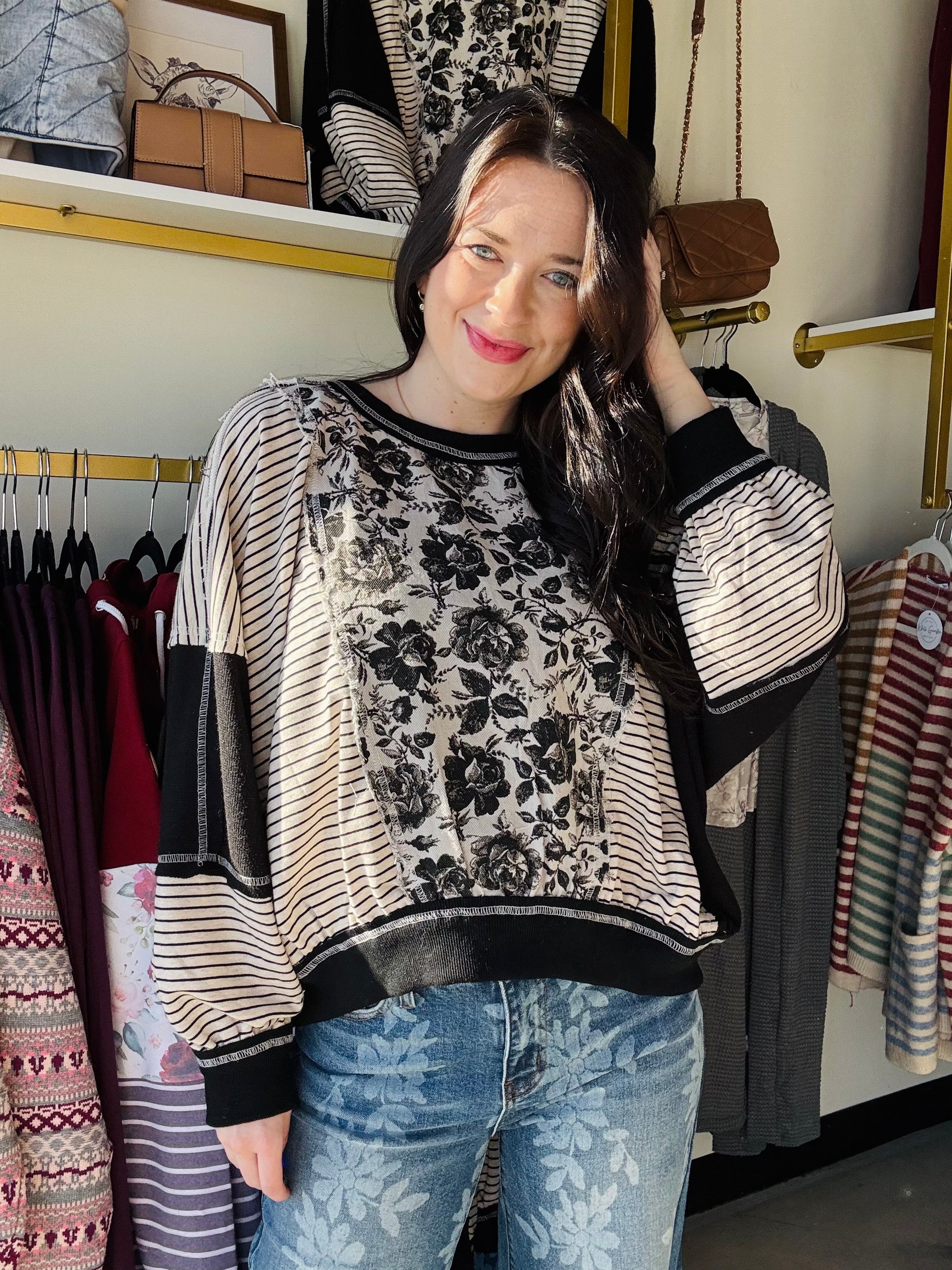 This versatile pullover combines a soft rose twill with classic striping for effortless layering. The cut edge detail adds a modern, finished touch that elevates any casual outfit. Perfect for mixing and matching with your existing wardrobe, this piece transitions seamlessly from season to season. Comfortable enough for everyday wear, polished enough for weekend plans.