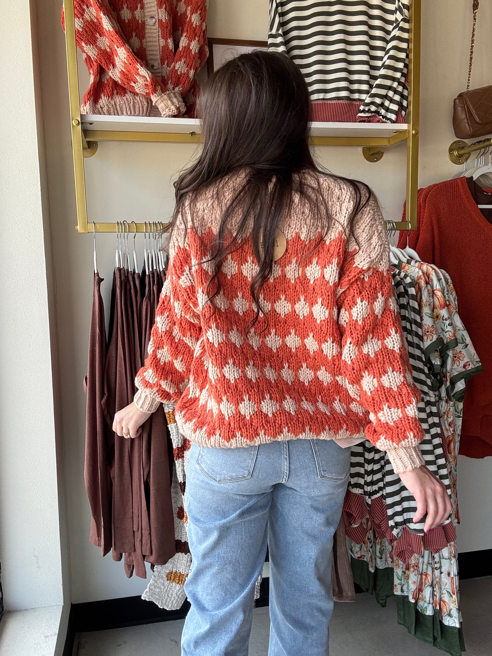 Wrap yourself in cozy charm with the Rust Textured Button Up Sweater. This chunky knit cardigan is perfect for crisp fall days, keeping you warm while adding a playful pop of color. The front button closure lets you style it your way—open for a breezy vibe or buttoned up for extra snugness. Embrace autumn in comfort and style!
