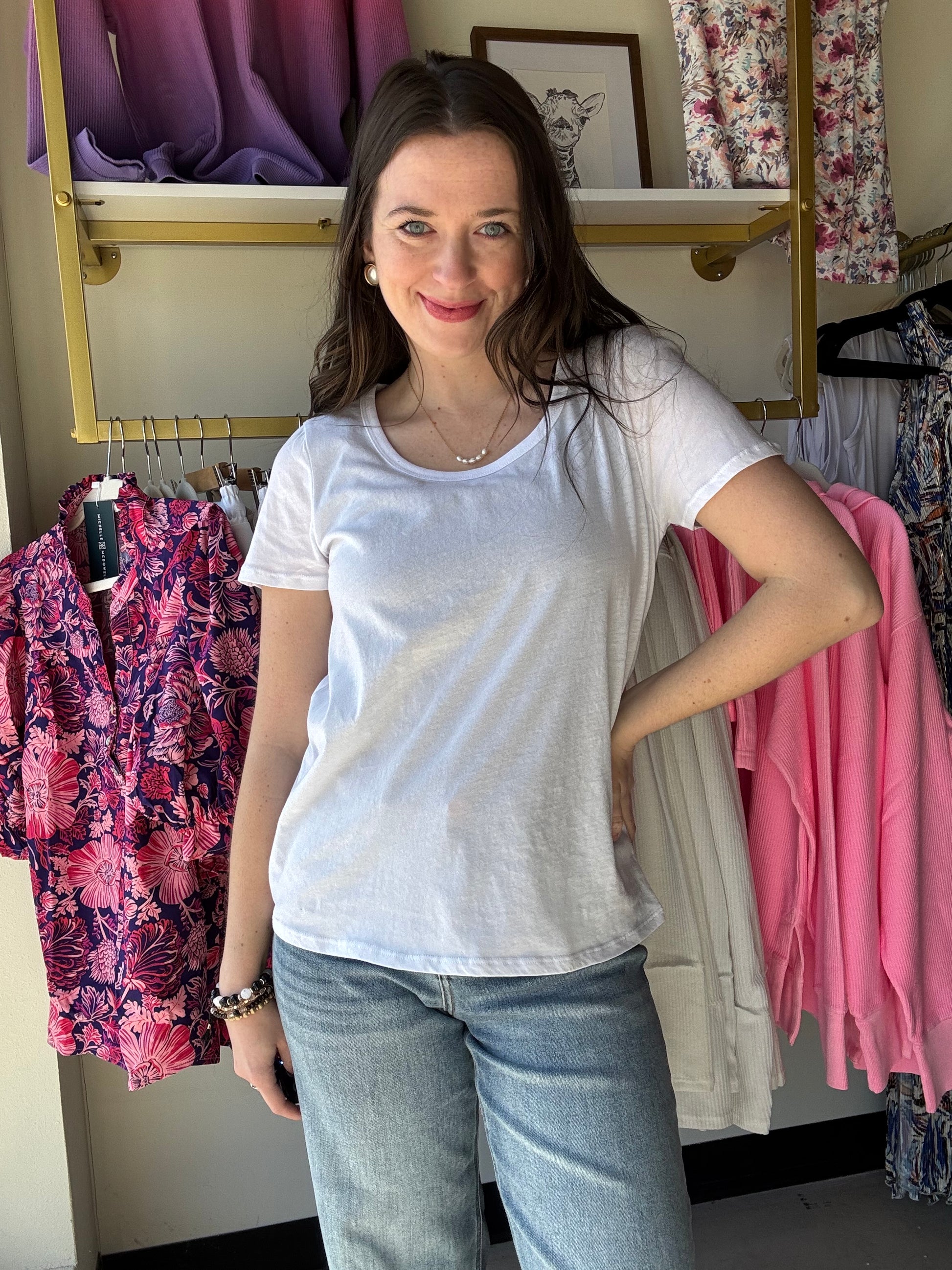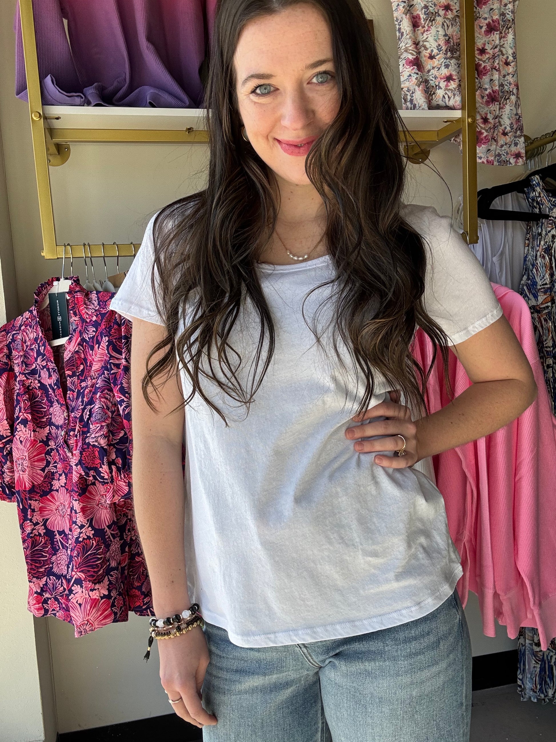 This relaxed tee has a comfy scoop neck. Style up this laid-back number by pairing it with your favorite denim or layered under a shacket.