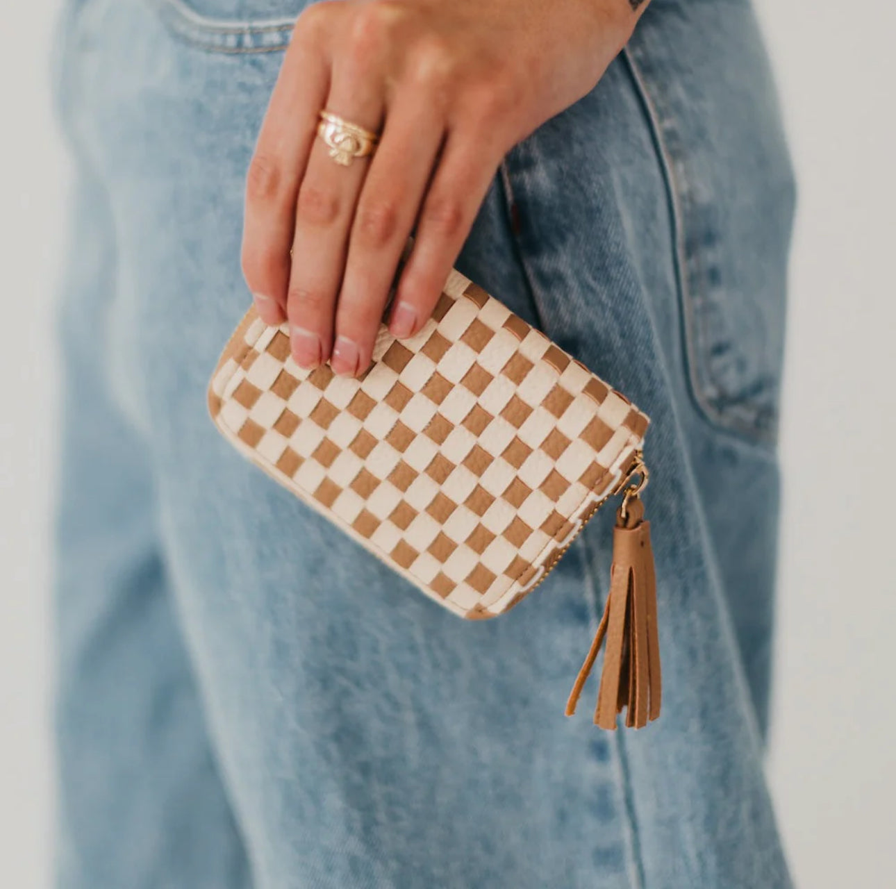 Get ready to fall in love with our new Wynona Woven Wallet! With 4 color options in a show-stopping checkered pattern, and a spacious interior, this wallet is both cute and practical for all your essentials. Keep your items safe and stylish all day long!